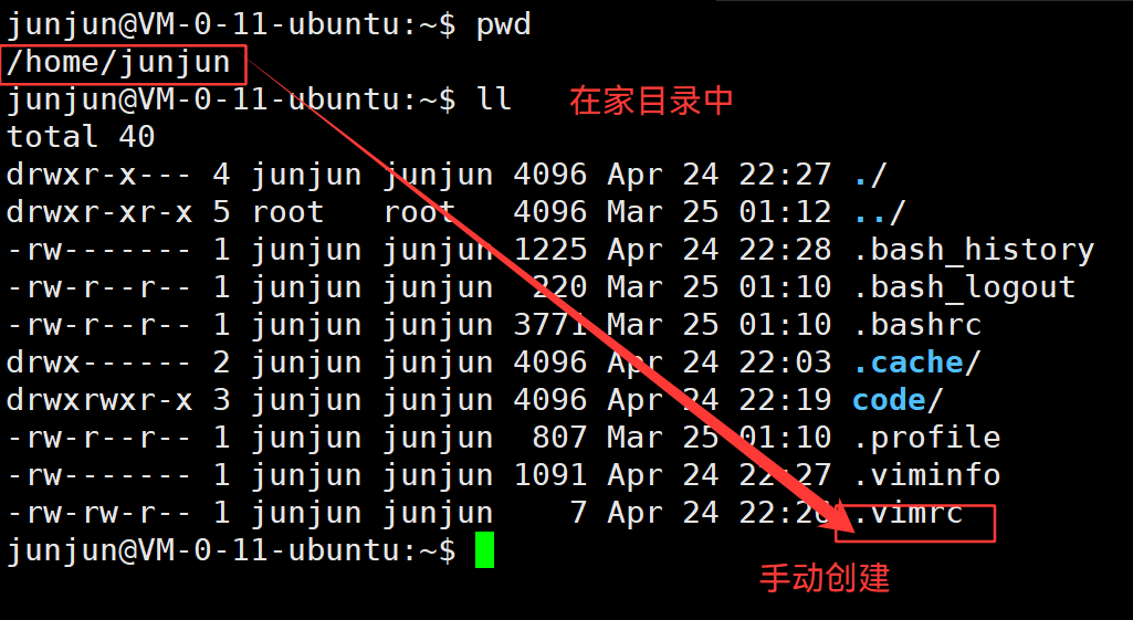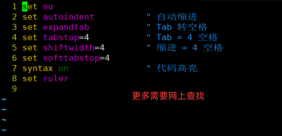 家目录创建 .vimrc 文件,vim .vimrc ,输入基础配置项如:set nu