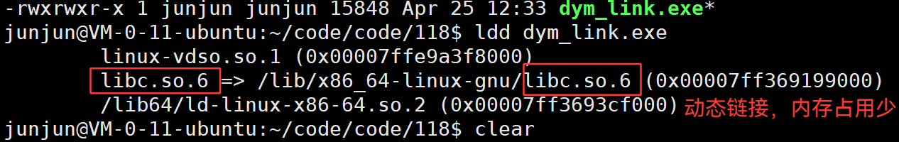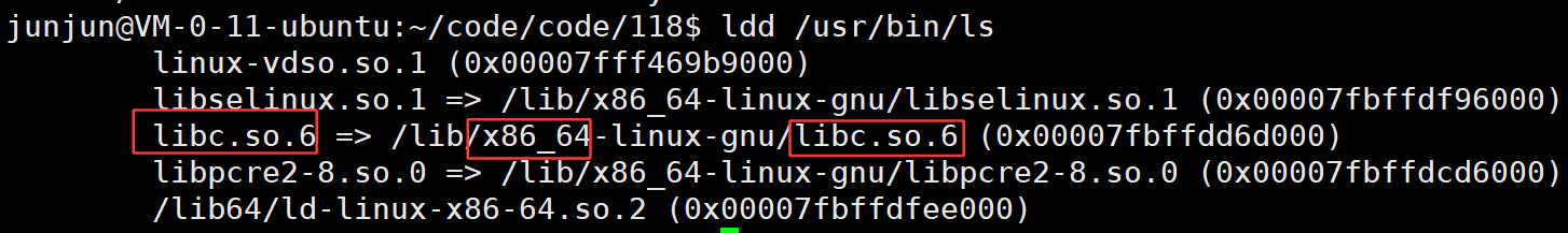 可以看到,ls这个指令使用了c的动态库,和Linux的动态库