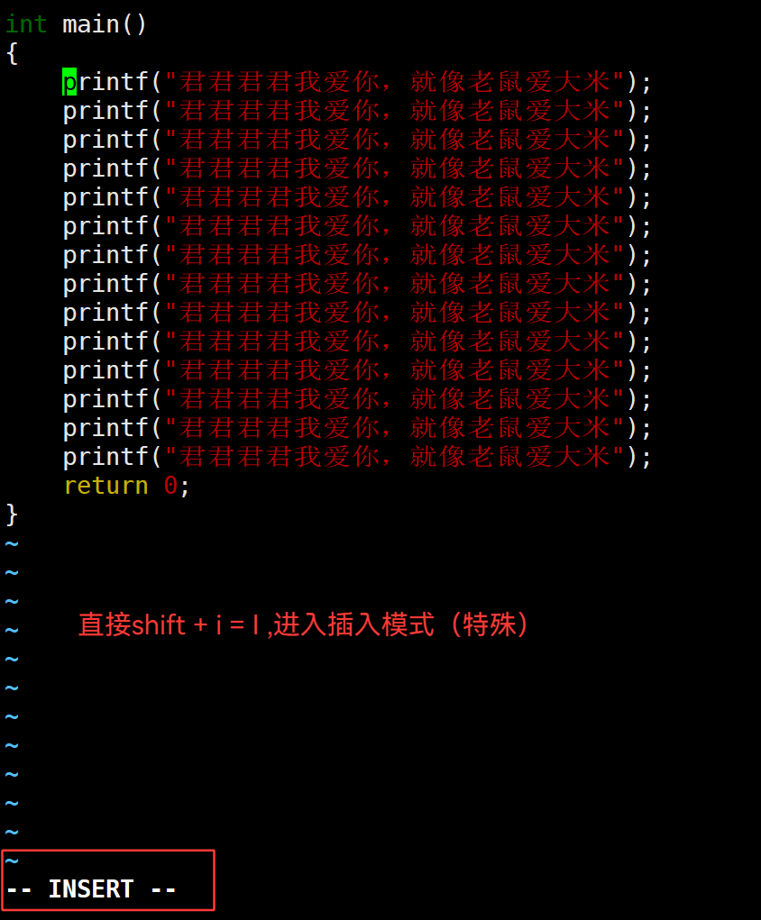 命令模式中,无法直接输入修改内容,需要进入插入模式,才能正常编辑
