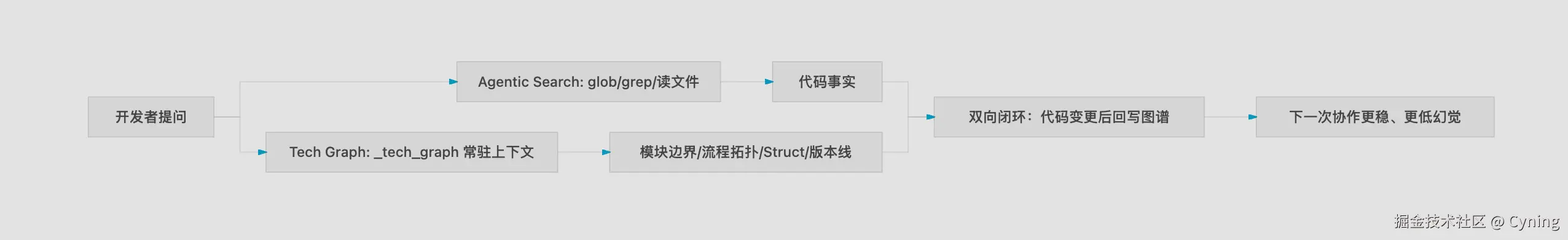 - 进度 :把"AI 辅助开发"从「单点 RAG」升级为「Agentic Search + Tech Graph(静态约束)」的可持续工程范式,并对齐后端项目的