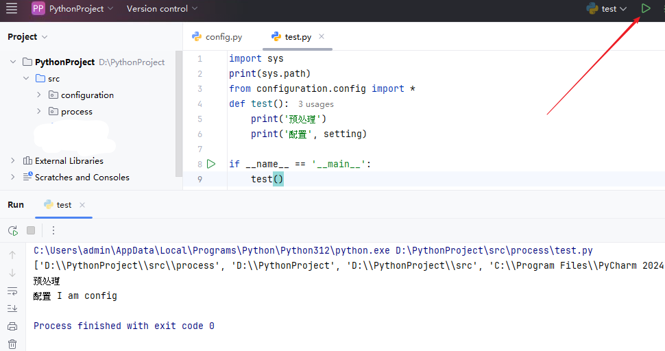 process包里找test.py文件,成功找到并导入 - 同理,