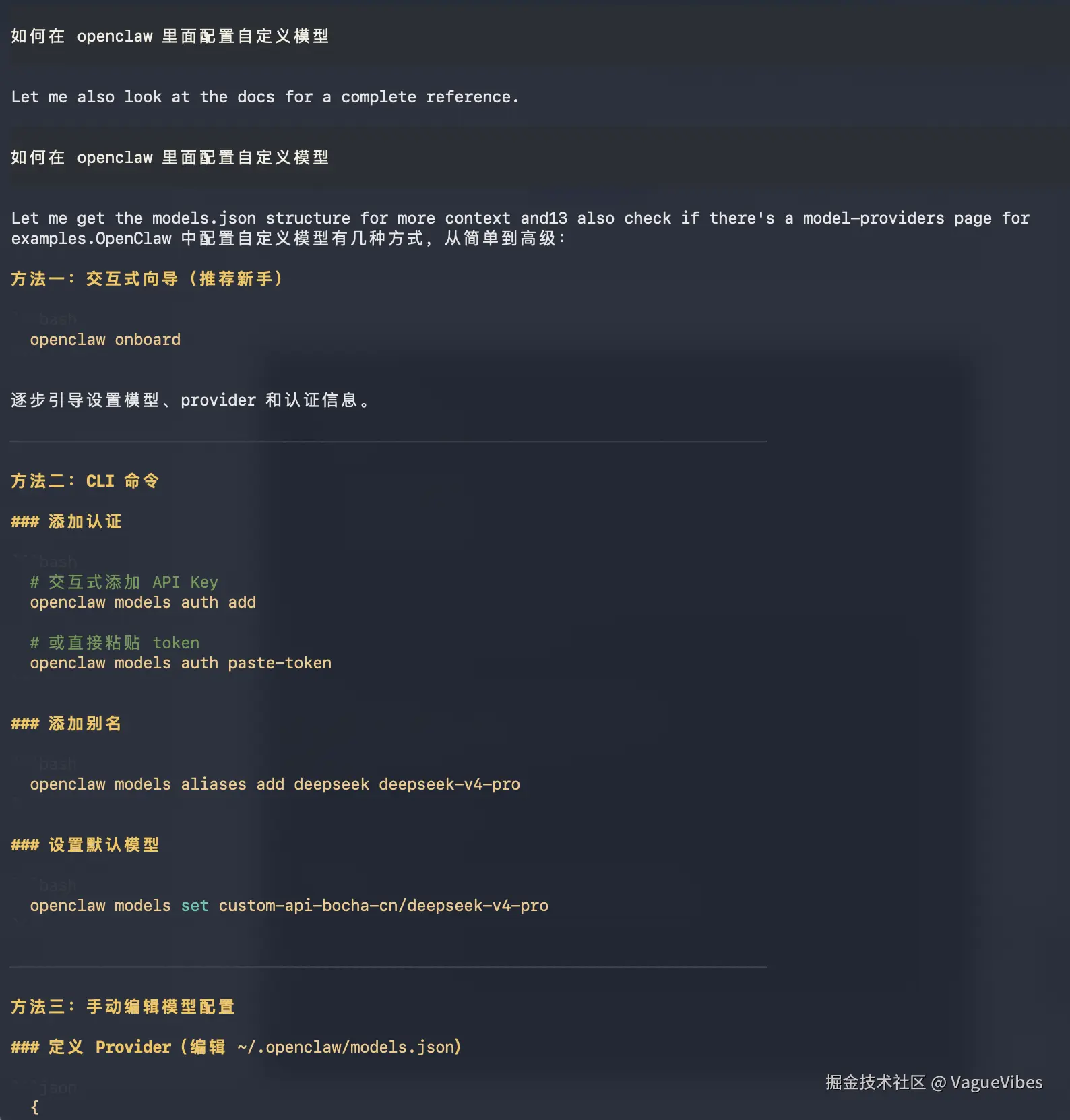 | Linux | ~/.openclaw/openclaw.json | 终端执行 vim ~/.openclaw/openclaw.json |