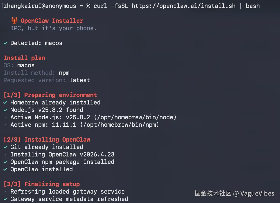 curl -fsSL https://openclaw.ai/install.sh | bash