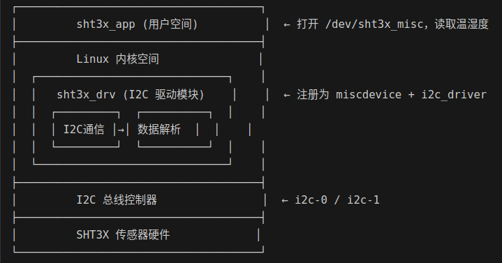 利用 Linux 内核中的I2C 子系统,编写SHT3X 温度传感器驱动,实时采集温度,并使用滑动均值滤波算法(窗口大小设置为5)实现数据处理;
