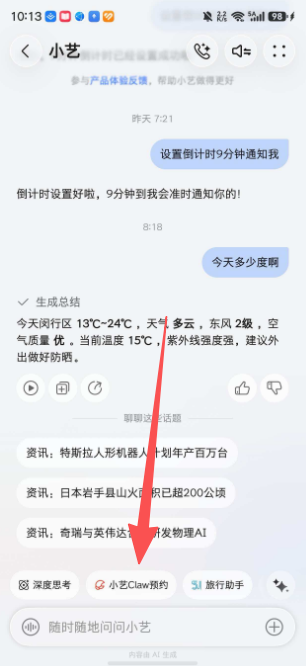 1、打开小艺 App,在搜索框输入 "小艺 Claw 预约",自动跳转预约页