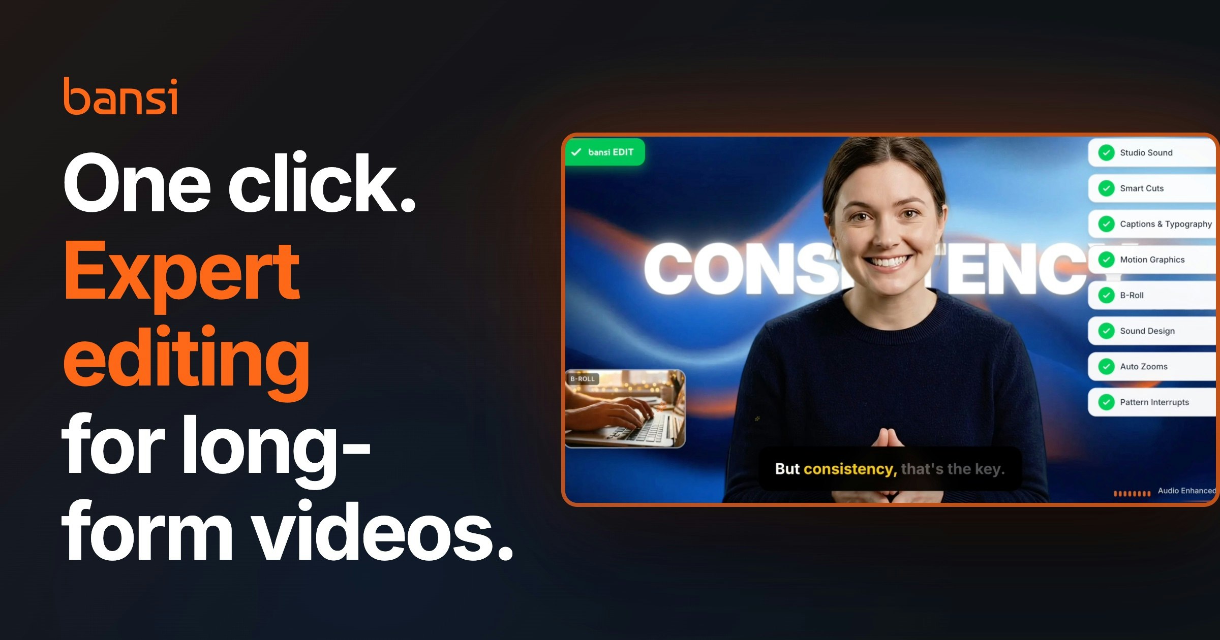 关键词:Bansi AI, 视频编辑, 人工智能, 长视频, 语音视频, 自动化, 专业技巧, B-roll, 文字动画, 音效设计