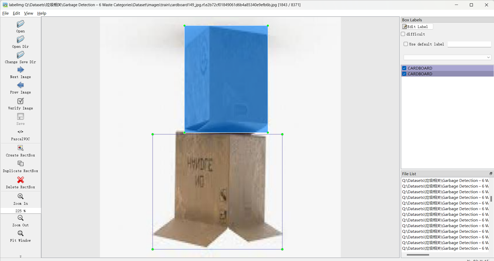 标注类别名称:BIODEGRADABLE、CARDBOARD、GLASS、METAL、PAPER、PLASTIC