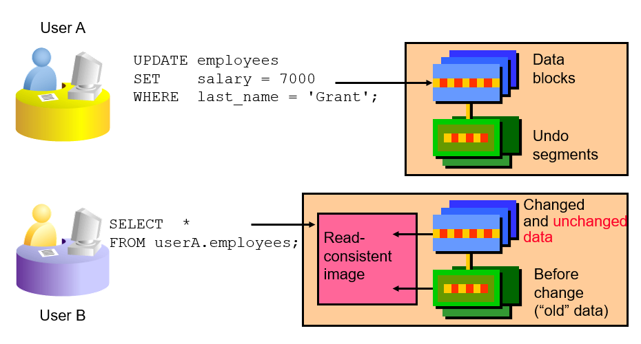 锁是oracle保证数据一致性的重要机制,当会话A对TEST表的某行进行操作时,会给该表的该行上锁,然后在会话A提交或回滚事务前,别的用户都无法再对该表的该行进行操作。