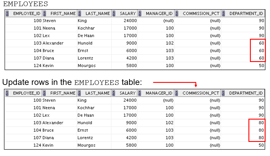 SQL> UPDATE TEST SET ID1=22 WHERE ID2=8 OR ID2=6;