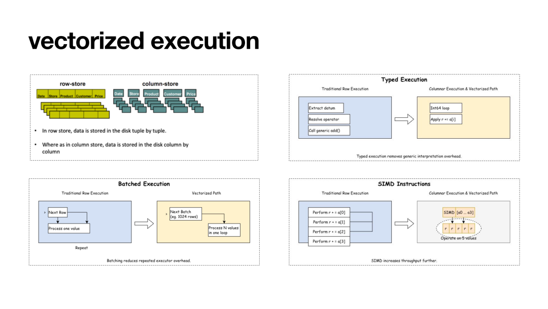 针对 PostgreSQL 标准执行器在 OLAP 场景下因"一次一元组"迭代模式带来的 CPU 重复开销,YMatrix 技术专家熊灿灿详细拆解了 mxvector 向量化执行引擎。
