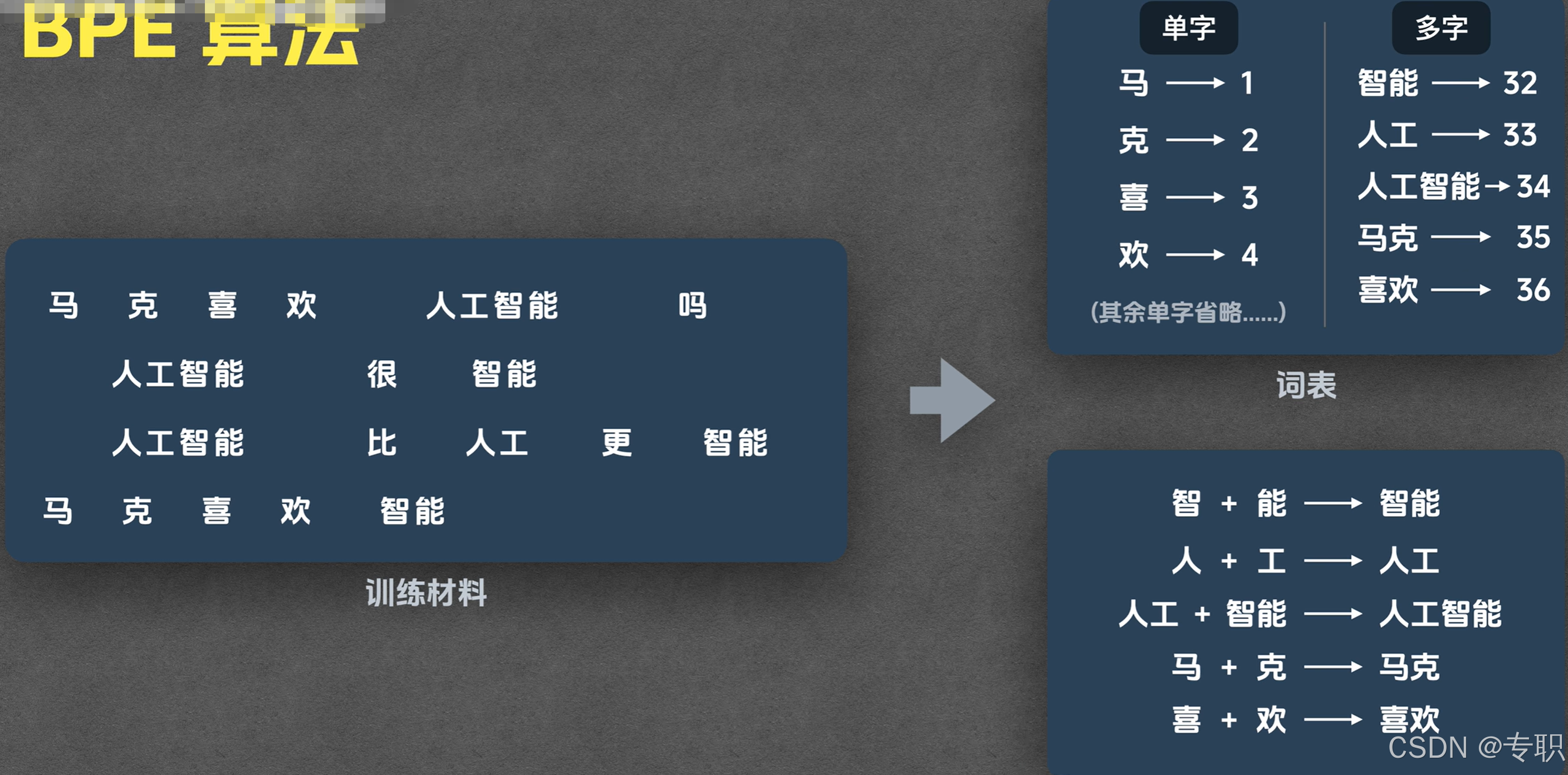 BPE:大致来说就是从一堆文章里找出哪些字在一起经常使用,然后把这些经常使用的字合起来作为一个Token
