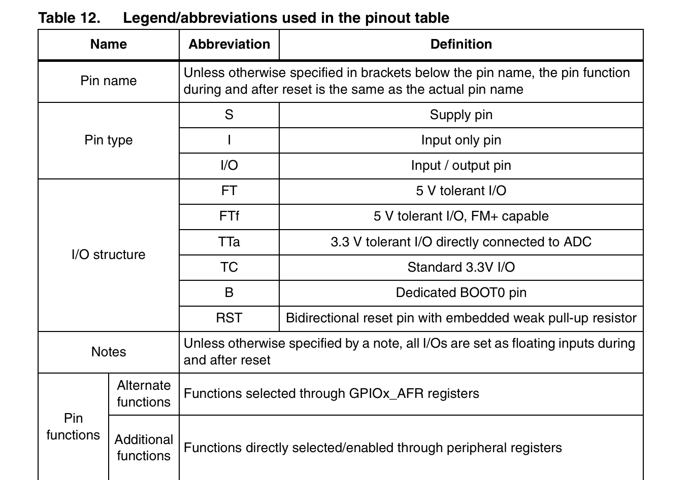 STM32的IO口种类如下图(来源STM32数据手册)