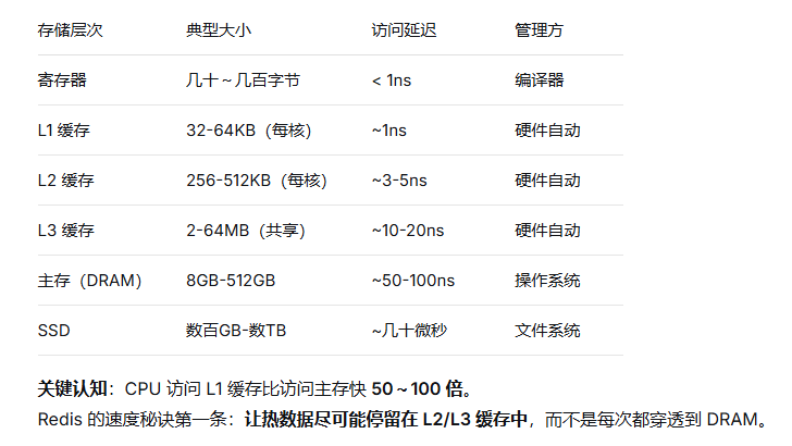 这篇博客,我带你从硅片上的 L1 缓存一路走到 Redis 的哈希表,弄懂那些看似"神奇"的性能数字背后,到底发生了什么。