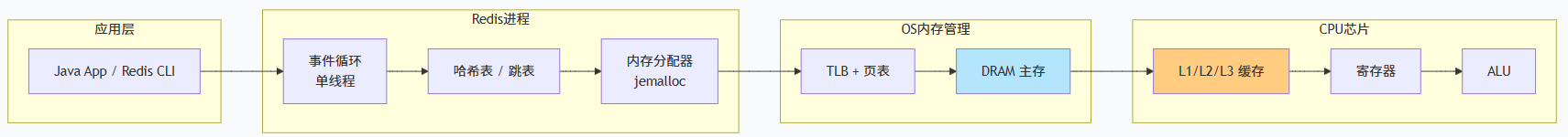 真相远比你想象的更底层------Redis 的每一纳秒加速,都踩在 CPU 的缓存层次、SRAM 与 DRAM 的博弈、TLB 和 Huge Pages 的节拍上。