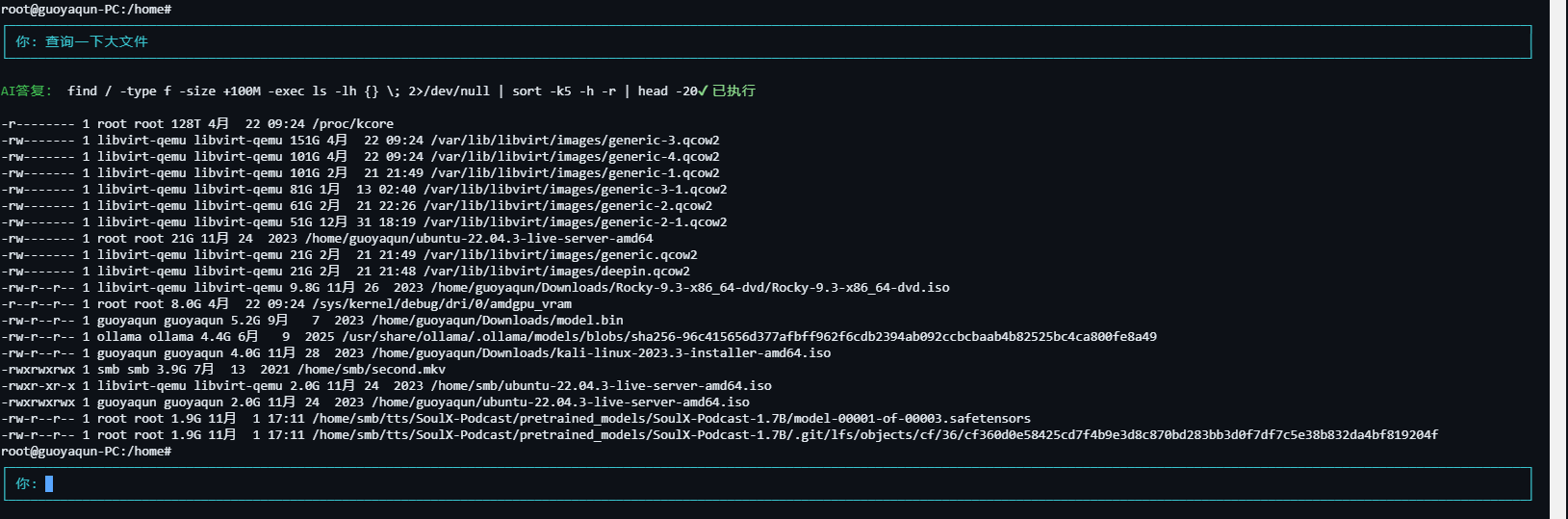 你只需要输入:查一下大文件