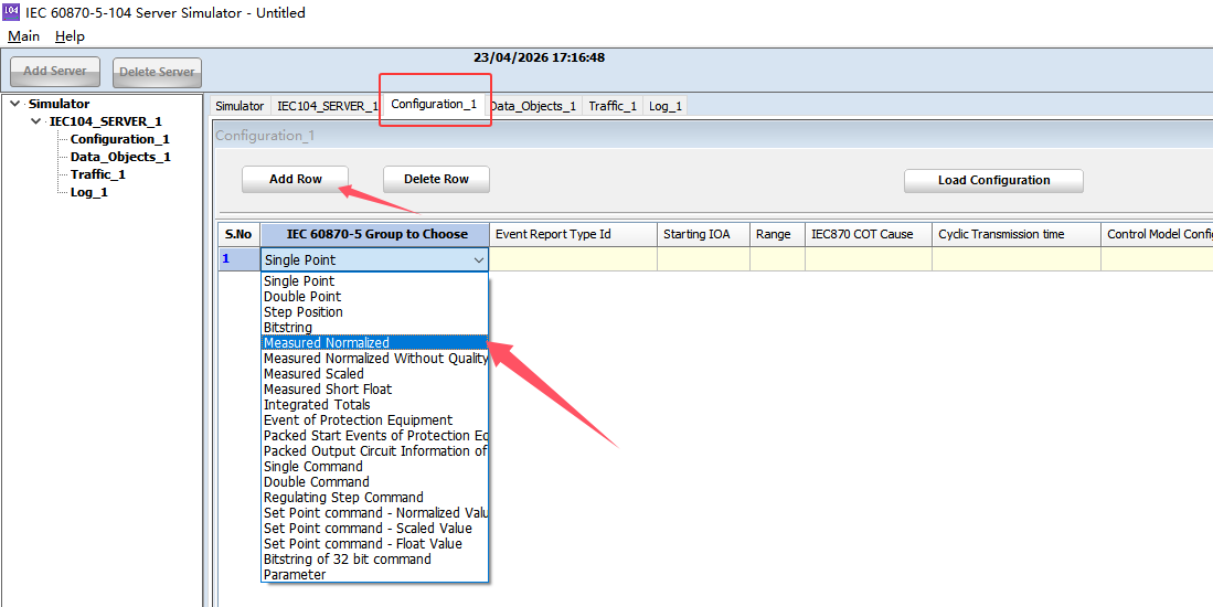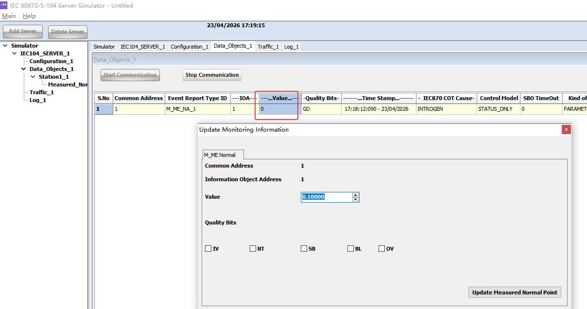 IEC 60870-5-104 Server Simulator模拟器支持多种数据类型的采集以及控制写入。