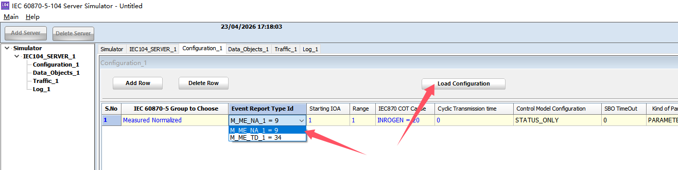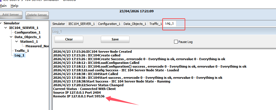 打开 IEC 60870-5-104 Server Simulator 模拟器