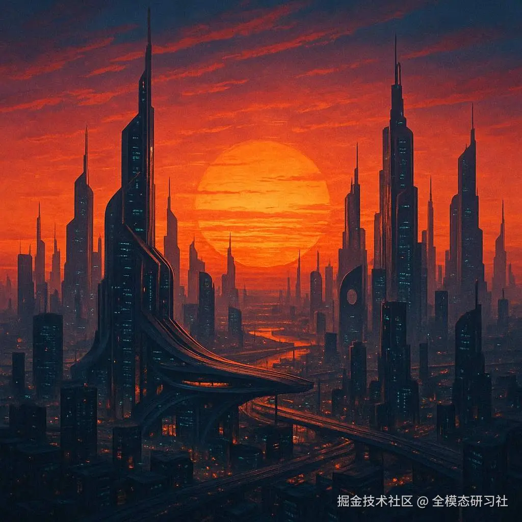 "text": "生成未来城市的日落图像"