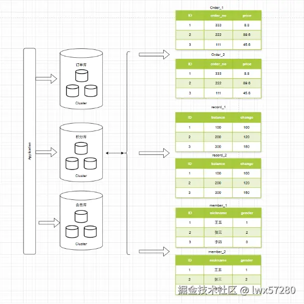 - 水平分表:按某个键(如用户 ID、时间)将数据分散到多张结构相同的表中。