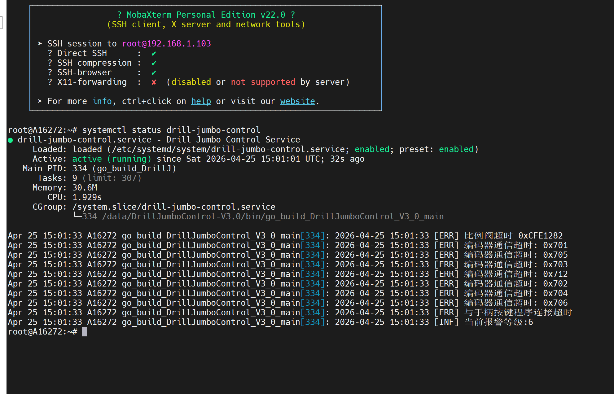 systemctl status drill-jumbo-control
