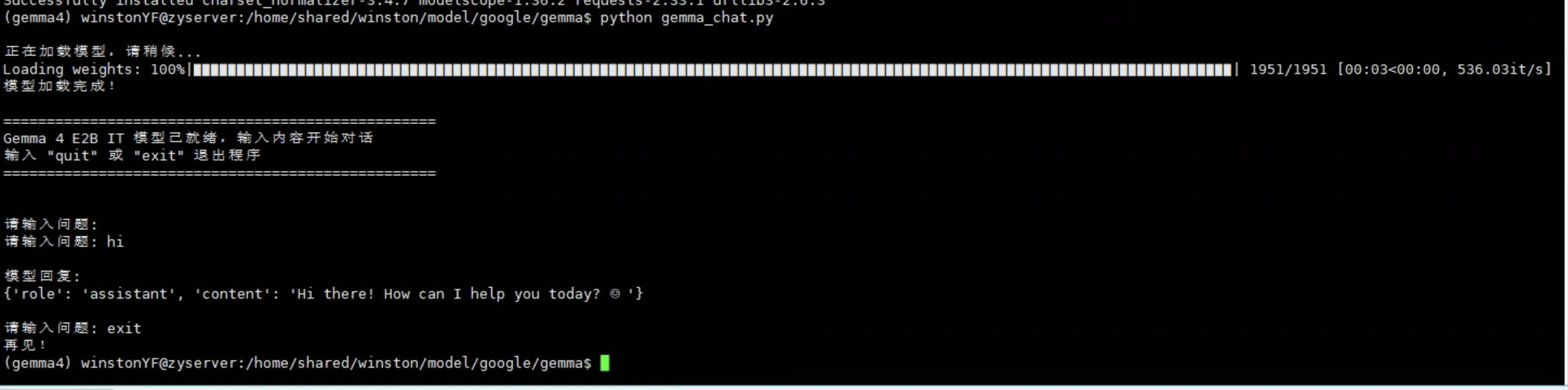 python gemma_chat.py # 使用默认路径(2B)