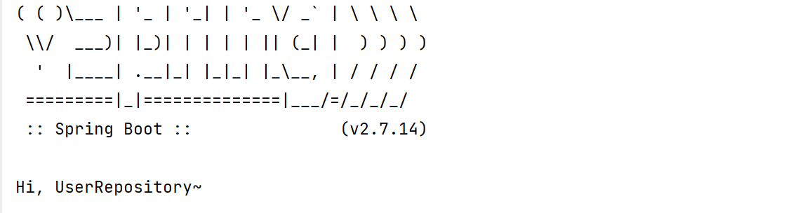 观察运⾏结果,发现成功从Spring中获取到UserRepository对象,并执⾏UserRepository的sayHi⽅法