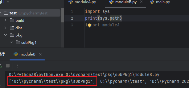 - 在如下文件moduleB项目下直接import moduleA是会报错的,提示找不到该模块,但是可以看到moduleA和moduleB在一个项目文件夹下: