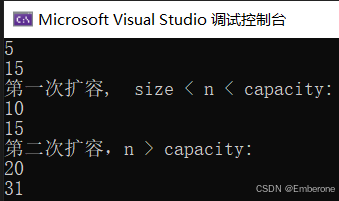 cout << "第二次扩容,n > capacity:" << endl;