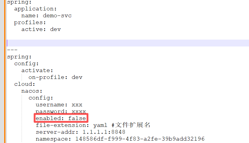 下图,我这里并未启用nacos,此时按理说就会去找application-dev.yml这个配置: