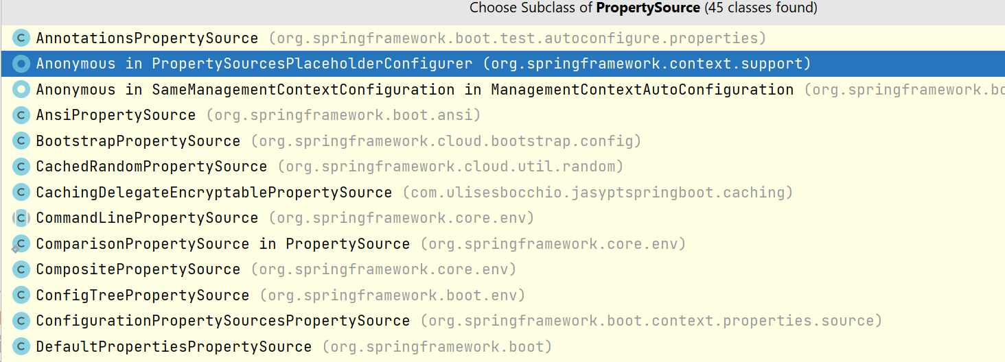 我发现,正常情况下(本地idea启动时指定下命令行参数),在查找配置值时,一般就是去Environment中的propertySource列表中查找,正常长这样: