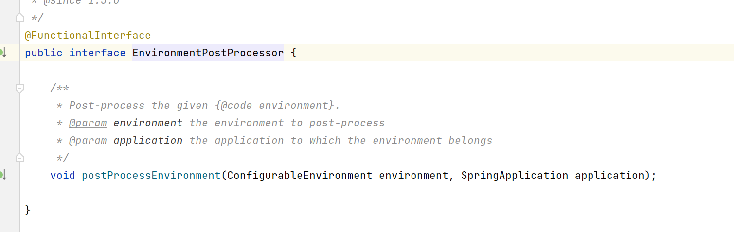 这个listener中会找到各个EnvironmentPostProcessor,这个后置处理器接口,类似于bean的那些后置处理器,也是spring给我们提供的扩展点,这个org.springframework.boot.env.EnvironmentPostProcessor主要就是方便我们对Environment进行后置处理。