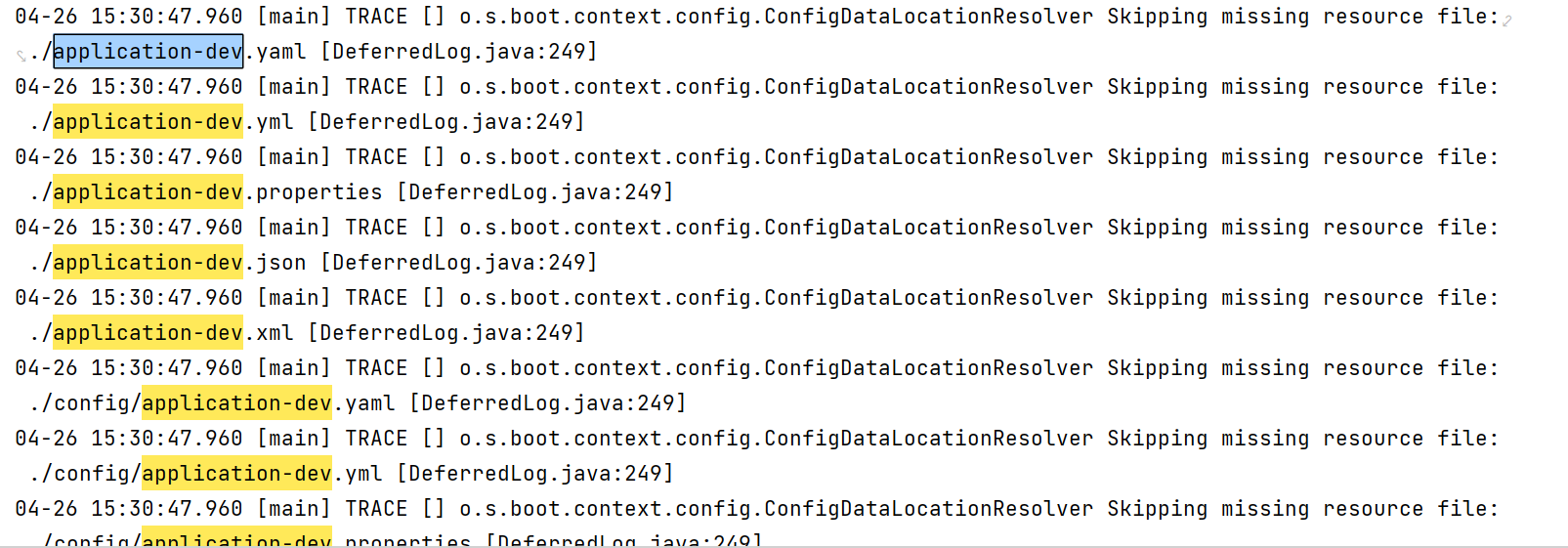 04-26 15:30:47.949 [main] TRACE [] o.s.boot.context.config.ConfigDataLocationResolver Skipping missing resource file:./application.yaml [DeferredLog.java:249]