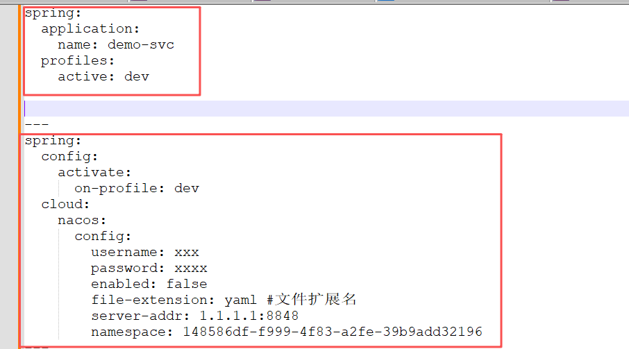 接手的一个spring cloud项目,我最近在对其进行改造,更符合自己的习惯。我个人习惯在bootsrap.yml中指定spring.profiles.active,如下所示,只要修改spring.profiles.active的值,就能切换到想要的profile去,使用对应的nacos配置: