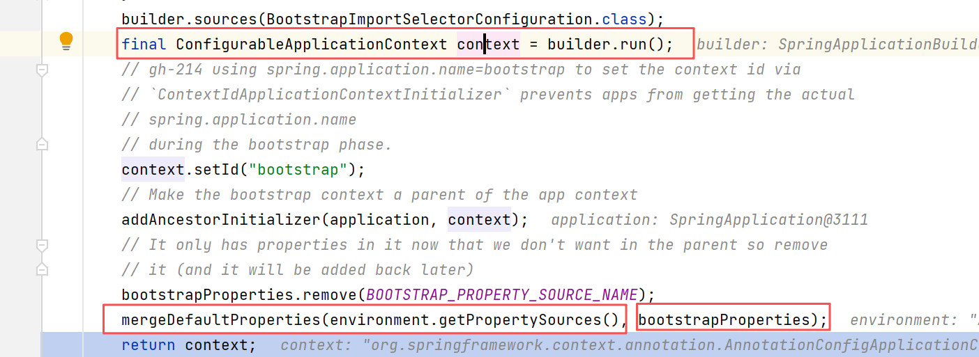 最终,bootstrap阶段这些配置,是需要合并到原来的env里的。