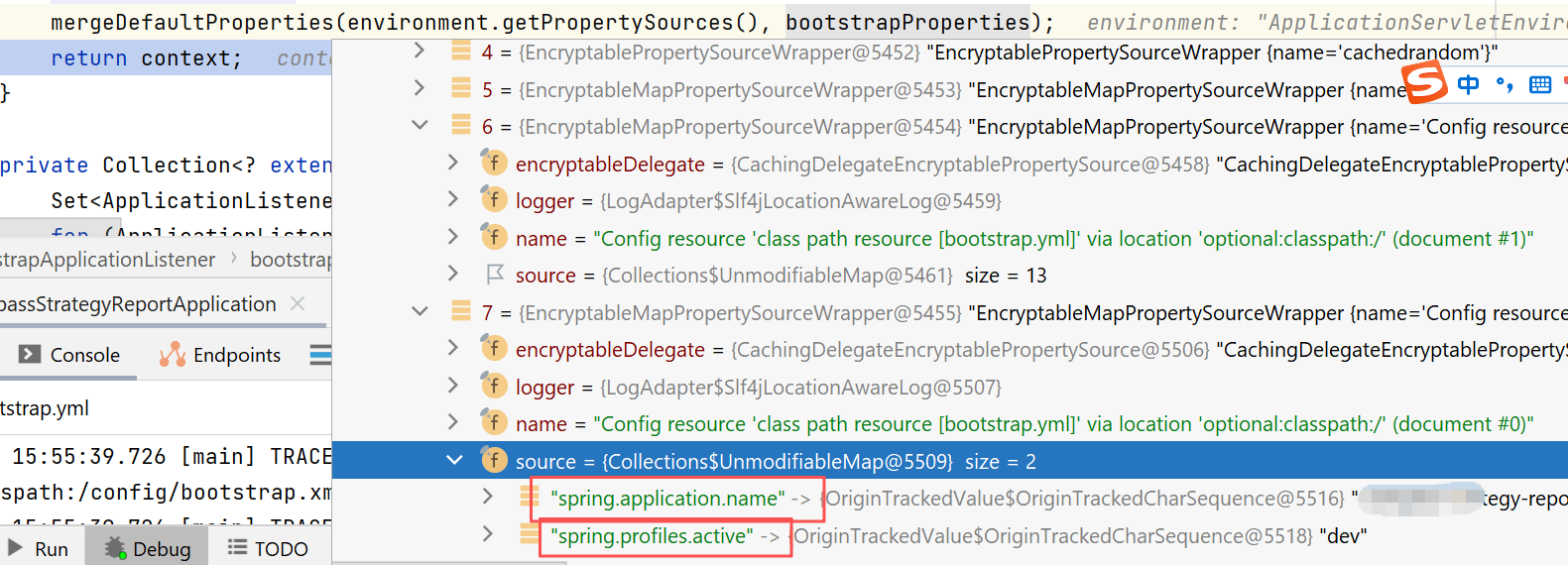debug发现,EncryptableMapPropertySourceWrapper中包含的原始的propertySource类型为: