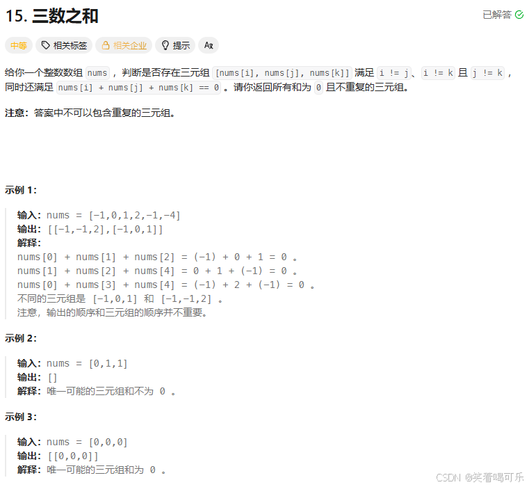 三数之和:固定一个数 → 剩下变成"两数之和"