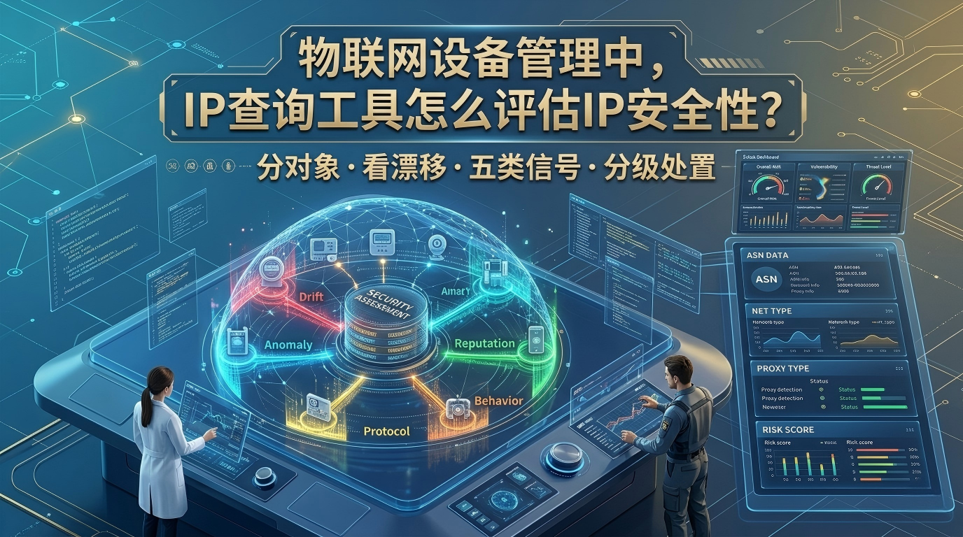 物联网里评估IP安全性,IP查询工具提供的是信号,不是判决书。信号怎么用,取决于你的业务上下文。做好四件事:分对象、查五类信号、打分分级、工程兜底,就能把"拍到"变成"判准"。IP数据云的离线库支持日更、批量查询和私有化部署,正好能撑起这套评估体系。
