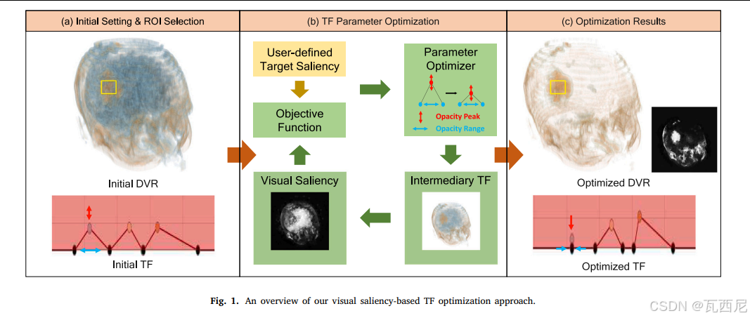 这篇论文题为《基于视觉显著性的感兴趣区域直接体绘制传递函数优化 》,发表于 Displays 期刊(2023年)。其核心思想是引入视觉显著性作为目标度量,来自动优化直接体绘制中的传递函数,以突出用户定义的感兴趣区域。