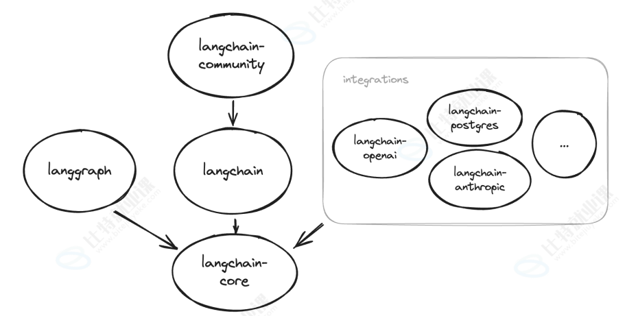 LangChain 生态系统包含不同的包,用来准确选择要安装的功能。