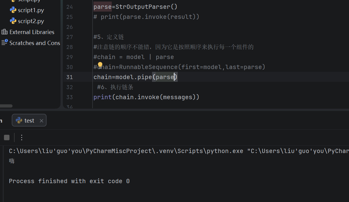 #4、定义输出解析 parse=StrOutputParser() # print(parse.invoke(result))