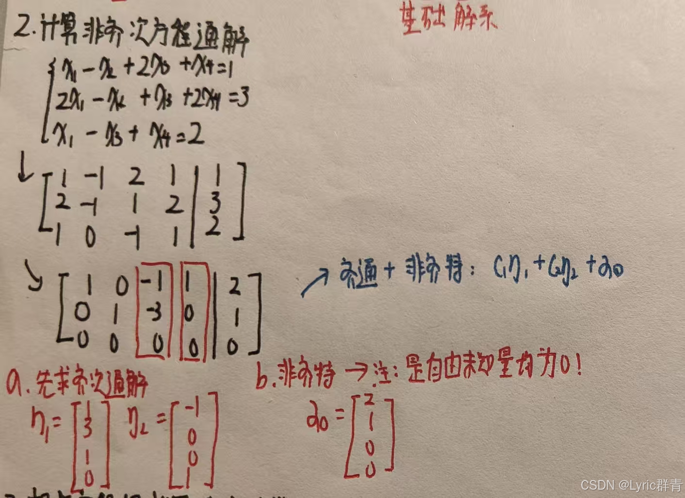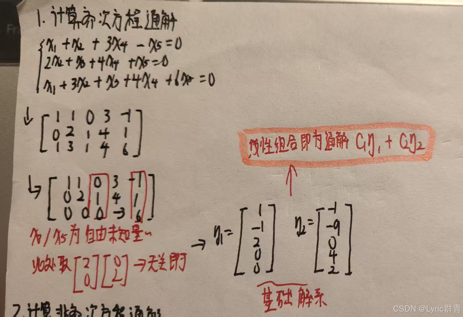 - 非齐次的任意特解的线性组合一般不再是非齐次特解