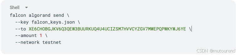 如果执行成功,falcon algorand send 命令将返回交易 ID: