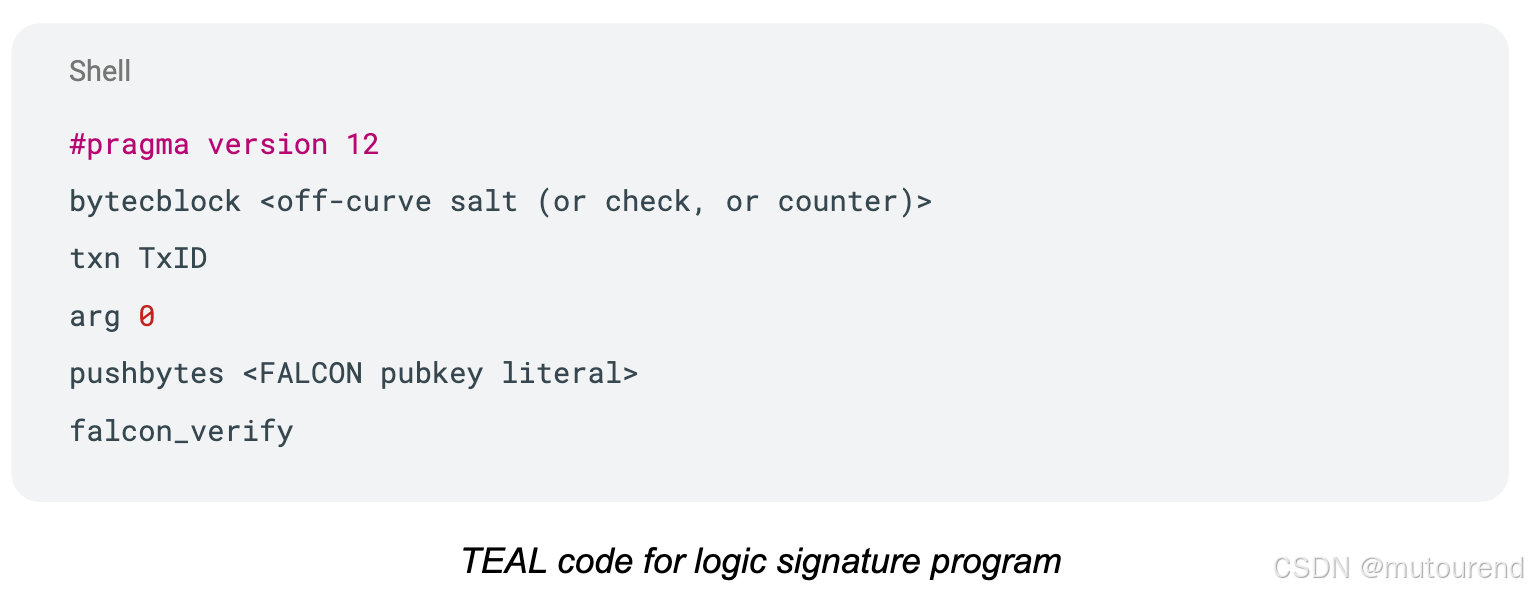 - 将公钥和一个 1 字节计数器嵌入到预编译的 TEAL 程序中,该程序会对交易 ID 调用