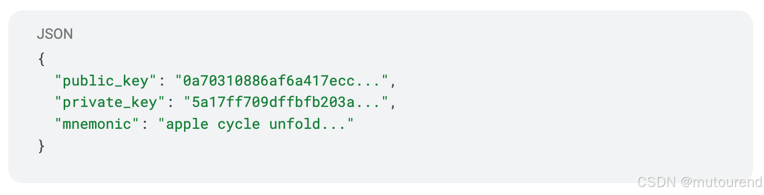 这会将一个新的 Falcon-1024 密钥对生成到 falcon_keys.json 文件中,下面是截断后的示例: