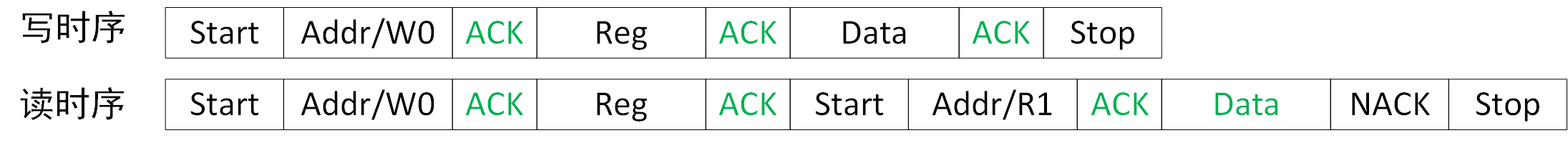I2C 的读写时序时序如下图所示,此外后面给出了一个具体的写时序示例。