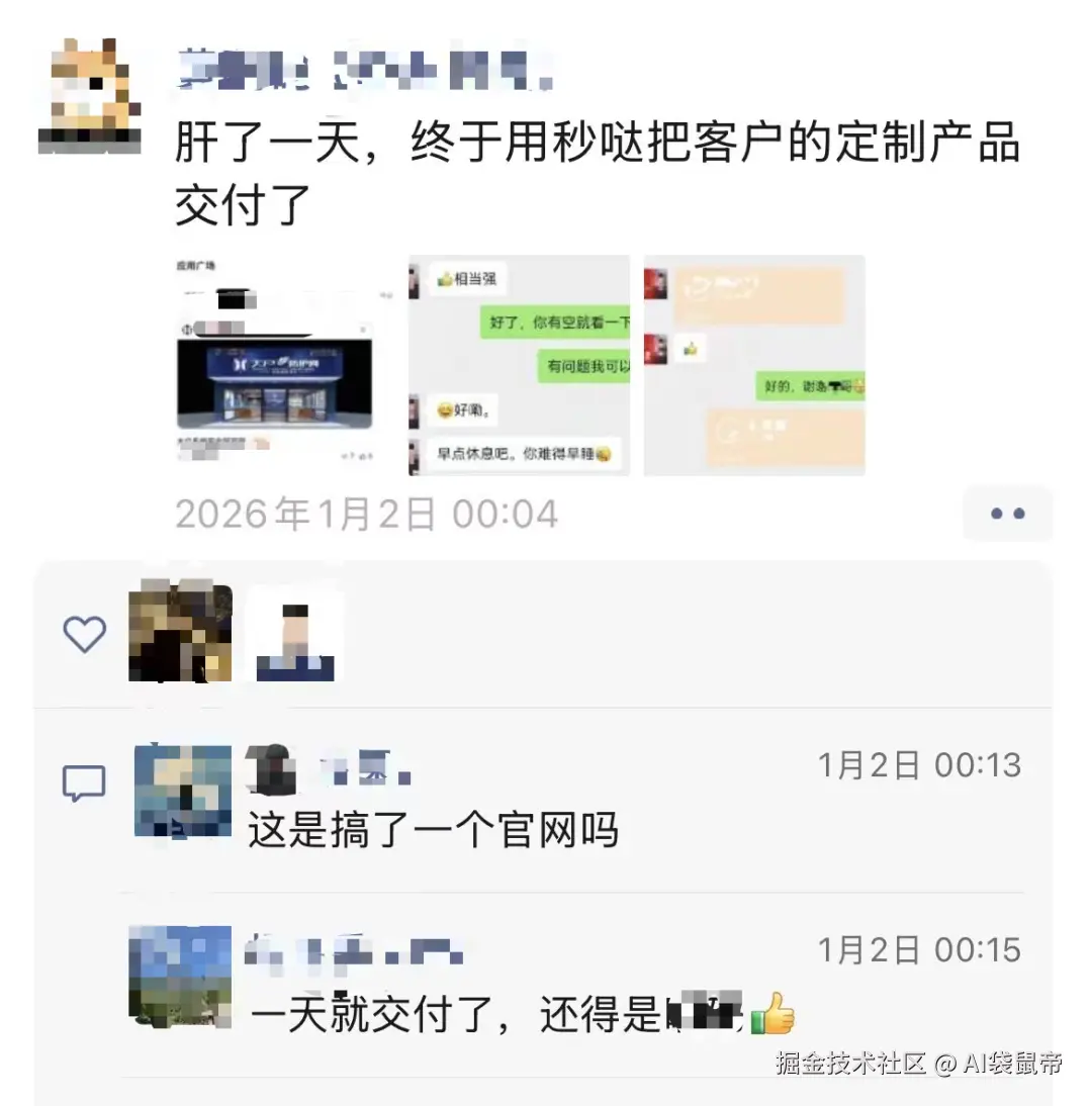 这也是为什么我觉得现在很多AI工具真正对普通人有价值的地方:它让你能以极低的成本,快速把脑子里的想法变成雏形去验证市场。