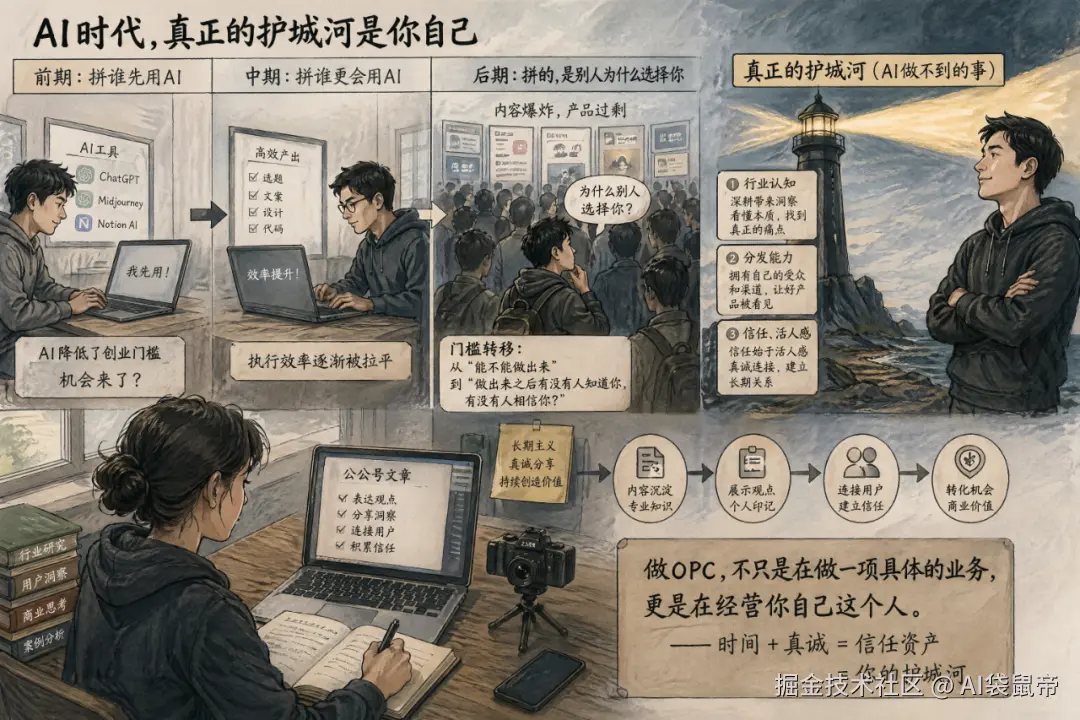 我越来越觉得,做OPC不只是在做一项具体的业务,更是在经营你自己这个人。 AI时代,真的护城河是你自己。