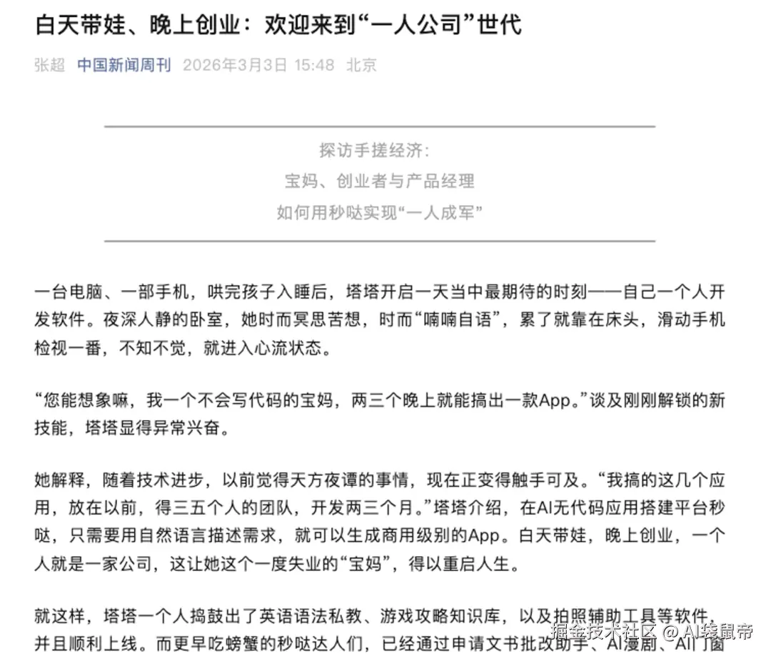 它更像是,你借助AI这个杠杆,把原本需要几个人协作才能完成的事情,尽量压缩到一个人也能先跑起来。