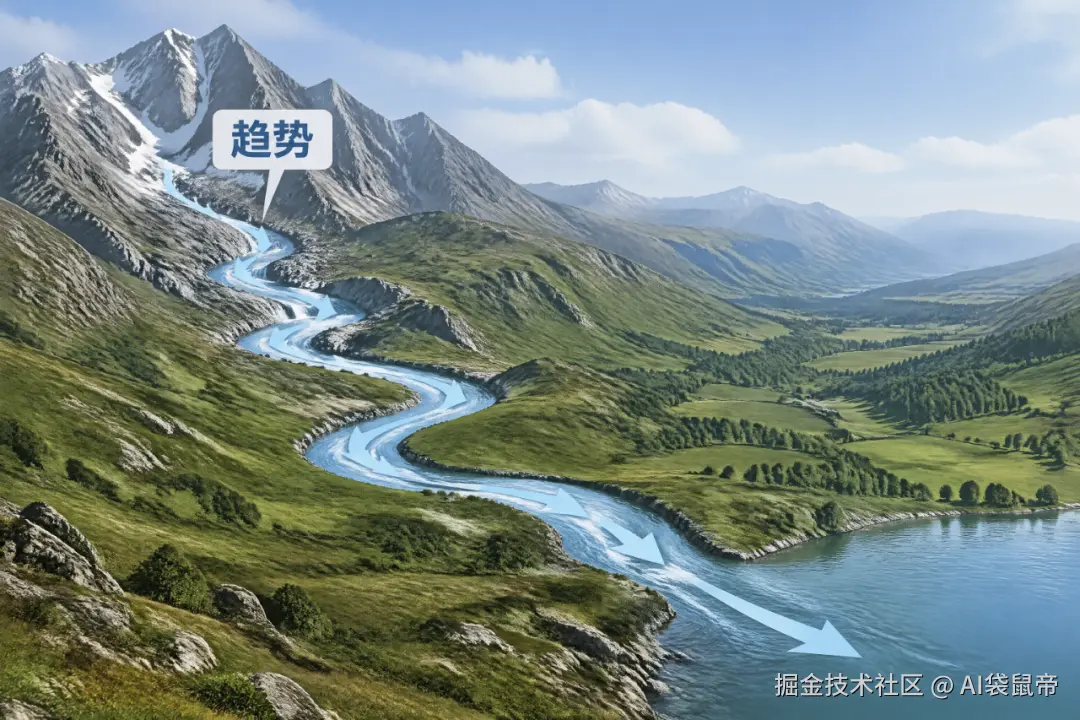 建议一:先站到趋势里 我的第一条建议,是尽量让自己站到趋势里。 因为一个人在趋势里顺流做事,和逆着趋势逆水行舟,体感真的完全不一样。