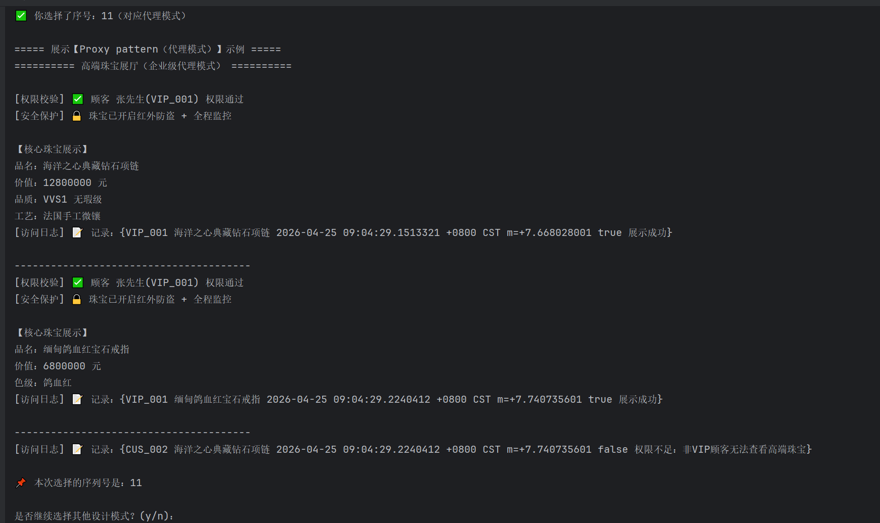 println("========== 高端珠宝展厅(企业级代理模式) ==========\n")
